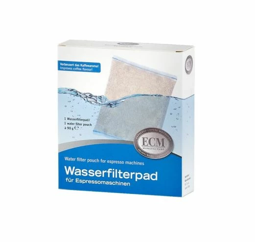Das Wasserfilterpad wird angefeuchet in den Wassertank der Maschine gelegt.